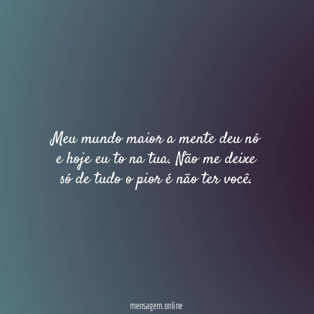 Meu mundo maior a mente deu nó e hoje eu to na tua. Não me deixe só de tudo o pior é não ter você.