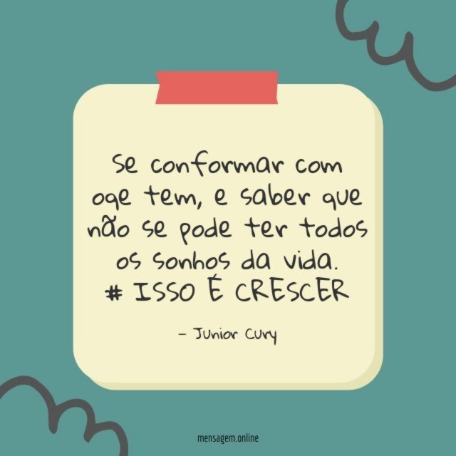 Se conformar com oqe tem, e saber que não se pode ter todos os sonhos da vida.
