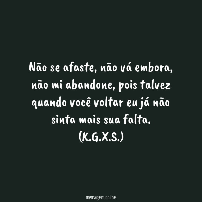 Não se afaste, não vá embora, não mi abandone, pois talvez quando você voltar eu já não sinta mais sua falta.