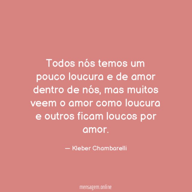 Todos nós temos um pouco loucura e de amor dentro de nós, mas muitos veem o amor como loucura e outros ficam loucos por amor.