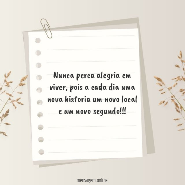 Nunca perca alegria em viver, pois a cada dia uma nova historia um novo local e um novo segundo!!!