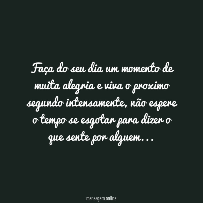 Faça do seu dia um momento de muita alegria e viva o proximo segundo intensamente, não espere o tempo se esgotar para dizer o que sente por alguem…
