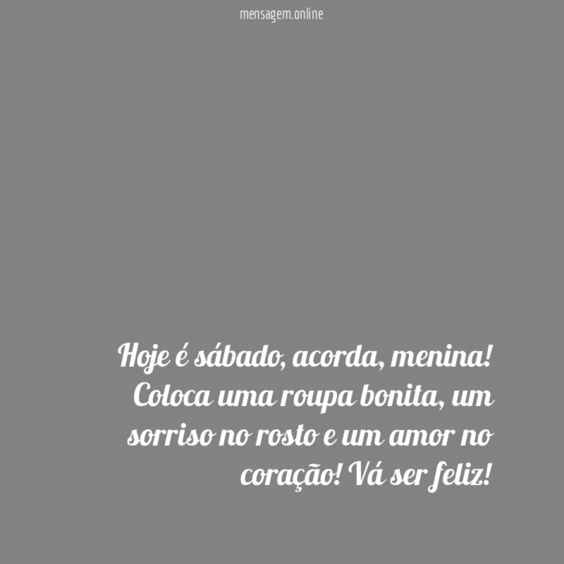 Hoje é sábado, acorda, menina! Coloca uma roupa bonita, um sorriso no rosto e um amor no coração! Vá ser feliz!