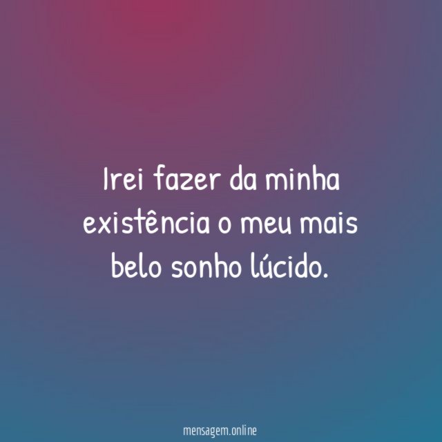 Irei fazer da minha existência o meu mais belo sonho lúcido.