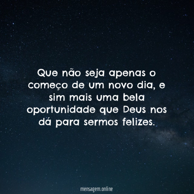 Que não seja apenas o começo de um novo dia, e sim mais uma bela oportunidade que Deus nos dá para sermos felizes.