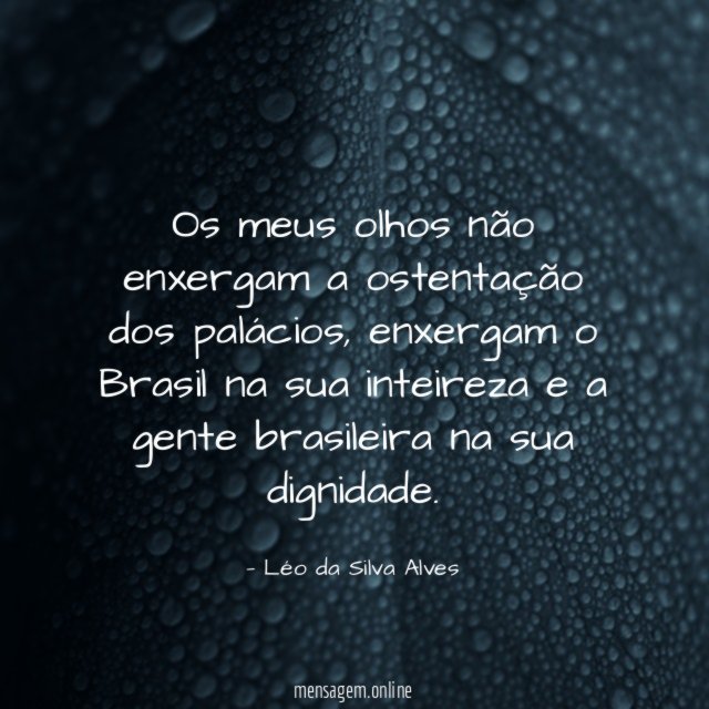 Os meus olhos não enxergam a ostentação dos palácios, enxergam o Brasil na sua inteireza e a gente brasileira na sua dignidade.