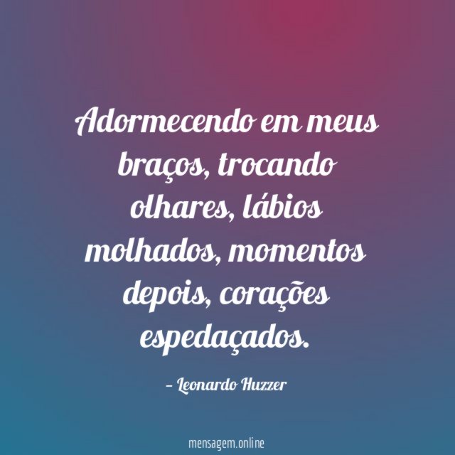 Adormecendo em meus braços, trocando olhares, lábios molhados, momentos depois, corações espedaçados.