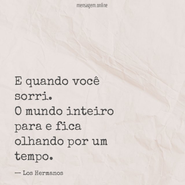 E quando você sorri. O mundo inteiro para e fica olhando por um tempo.