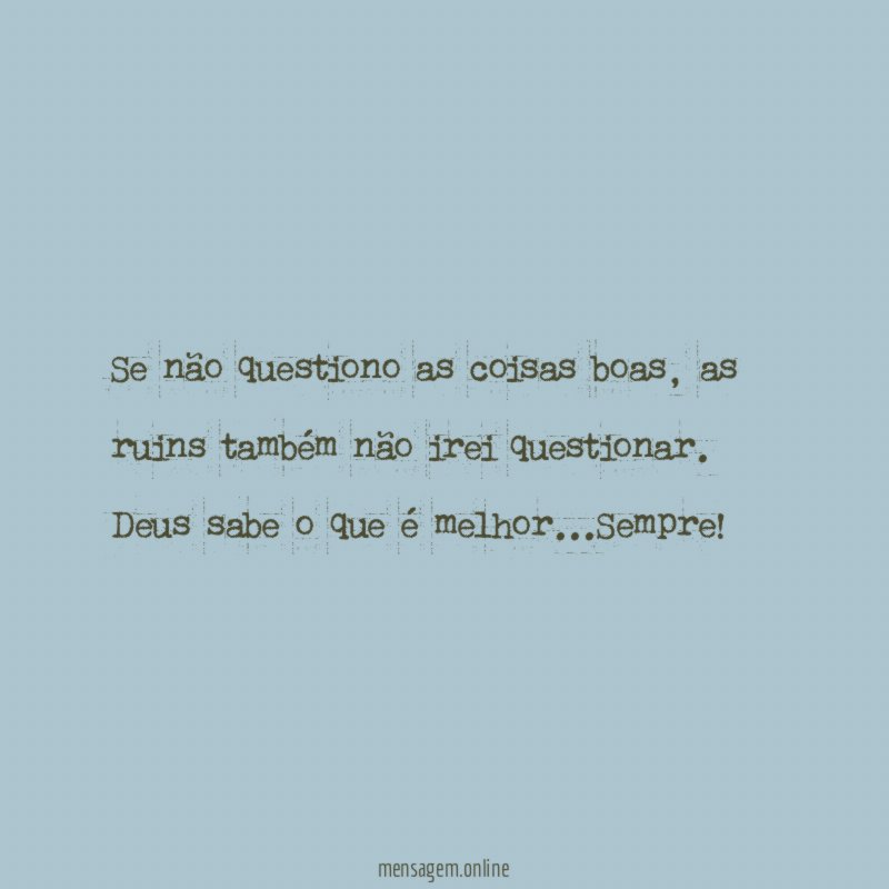 Se não questiono as coisas boas, as ruins também não irei questionar. Deus sabe o que é melhor…Sempre!