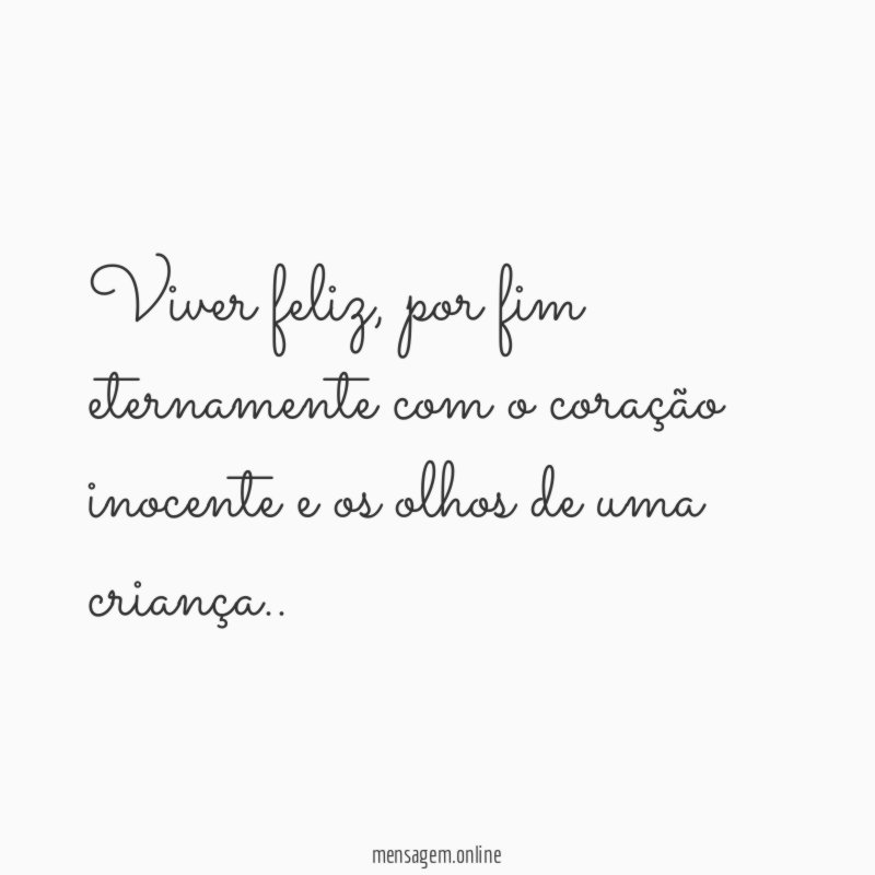 Viver feliz, por fim eternamente com o coração inocente e os olhos de uma criança..