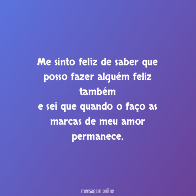 Me sinto feliz de saber que posso fazer alguém feliz também