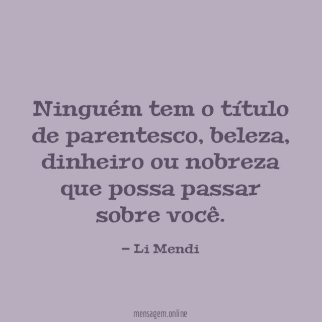 Ninguém tem o título de parentesco, beleza, dinheiro ou nobreza que possa passar sobre você.