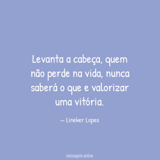 Levanta a cabeça, quem não perde na vida, nunca saberá o que e valorizar uma vitória.