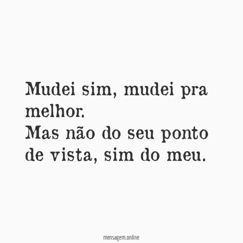 Mudei sim, mudei pra melhor. Mas não do seu ponto de vista, sim do meu.
