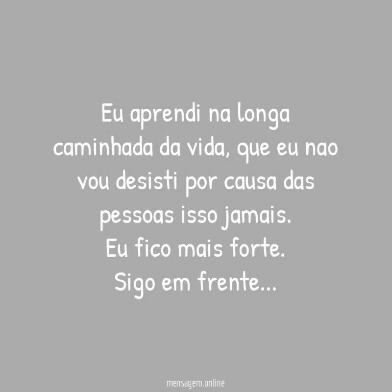 " A caminhada é longa, então não olhe para trás, você pode tropeçar.. Apenas olhe pra frente, e siga. Desviando de todos os obstáculos e de tudo aquilo e aqueles que não querem o seu bem ".