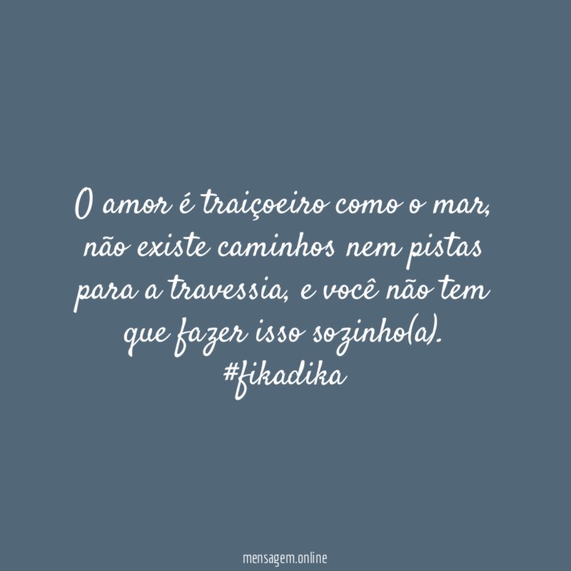 O amor é traiçoeiro como o mar, não existe caminhos nem pistas para a travessia, e você não tem que fazer isso sozinho(a). #fikadika