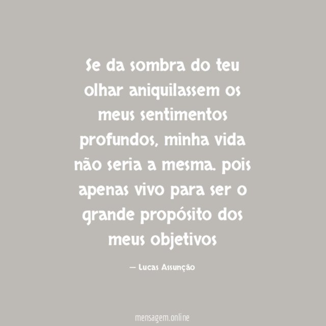 Se da sombra do teu olhar aniquilassem os meus sentimentos profundos, minha vida não seria a mesma. pois apenas vivo para ser o grande propósito dos meus objetivos