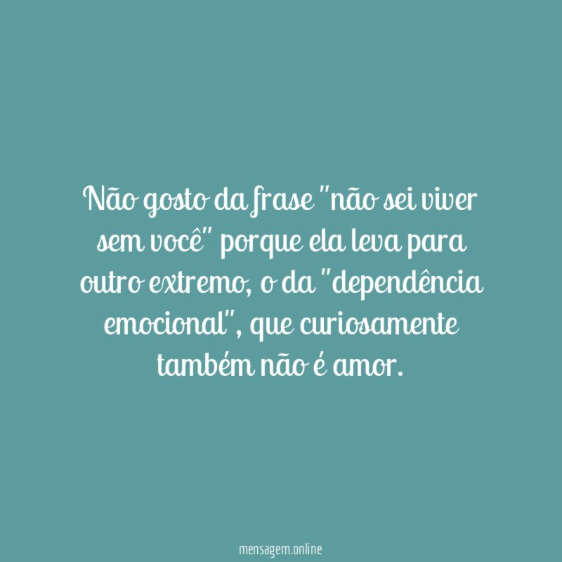 Não gosto da frase "não sei viver sem você" porque ela leva para outro extremo, o da "dependência emocional", que curiosamente também não é amor.