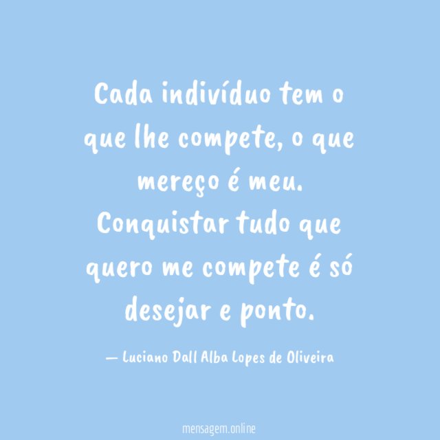 "Cada indivíduo tem o que lhe compete, o que mereço é meu. Conquistar tudo que quero me compete é só desejar e ponto."