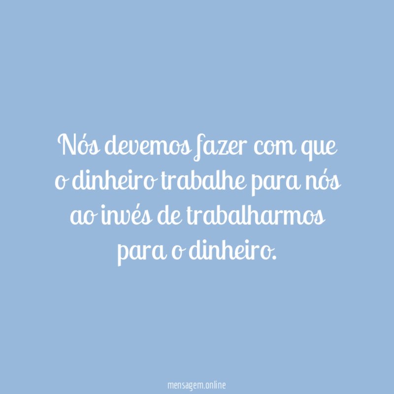 "Nós devemos fazer com que o dinheiro trabalhe para nós ao invés de trabalharmos para o dinheiro."