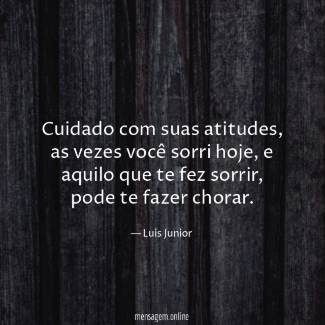 Cuidado com suas atitudes, as vezes você sorri hoje, e aquilo que te fez sorrir, pode te fazer chorar.
