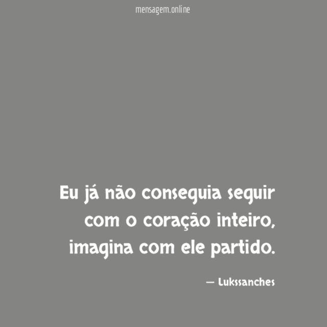 Eu já não conseguia seguir com o coração inteiro, imagina com ele partido.