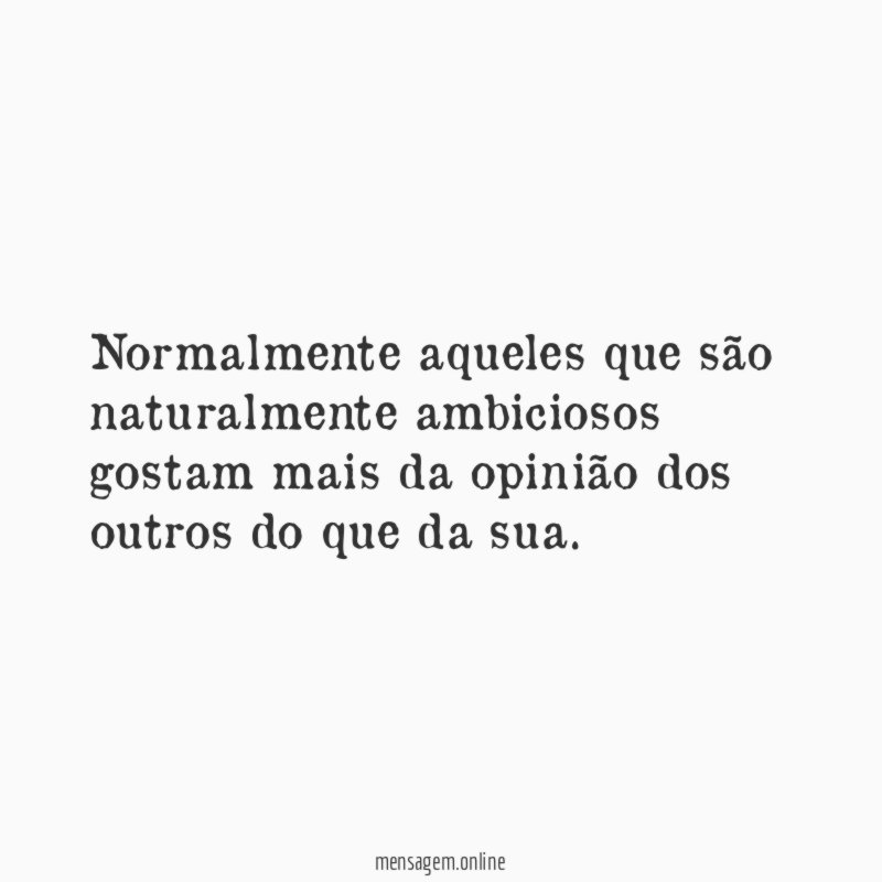 Normalmente aqueles que são naturalmente ambiciosos gostam mais da opinião dos outros do que da sua.