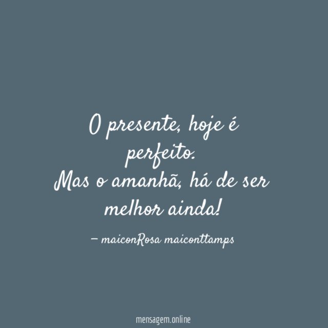 O presente, hoje é perfeito. Mas o amanhã, há de ser melhor ainda!