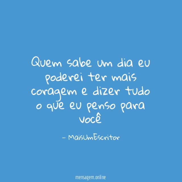 Quem sabe um dia eu poderei ter mais coragem e dizer tudo o que eu penso para você