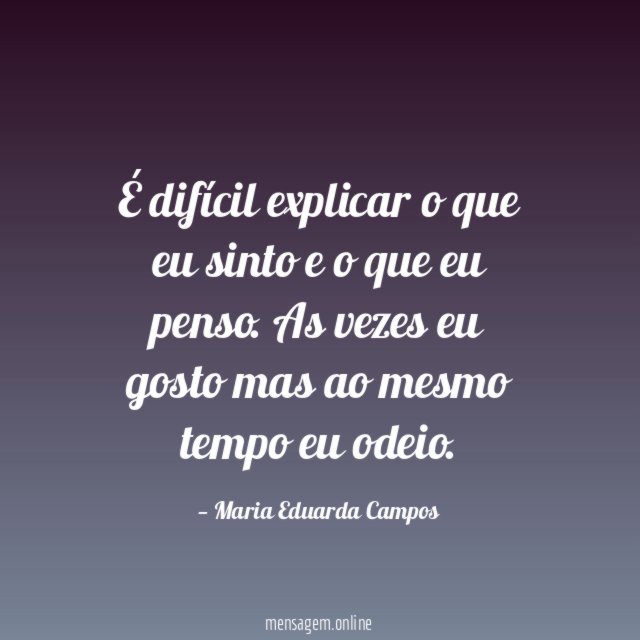 É difícil explicar o que eu sinto e o que eu penso. As vezes eu gosto mas ao mesmo tempo eu odeio.