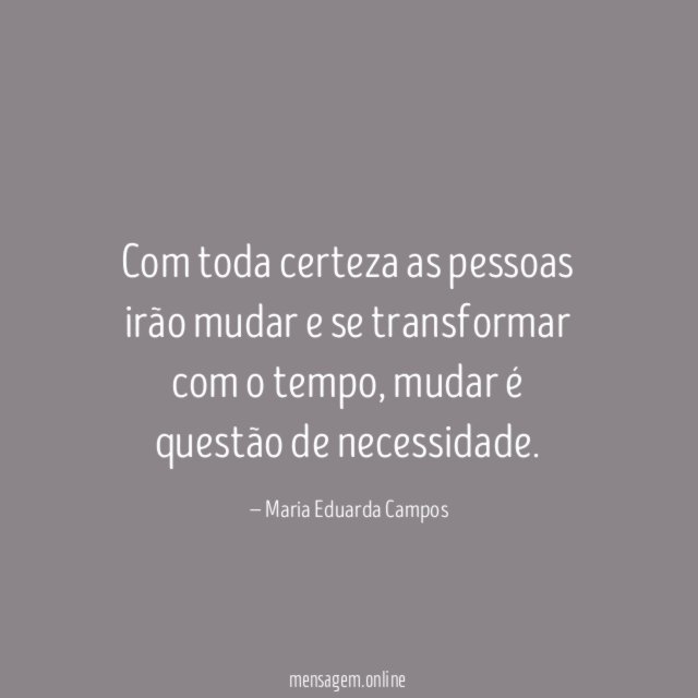 Com toda certeza as pessoas irão mudar e se transformar com o tempo, mudar é questão de necessidade.