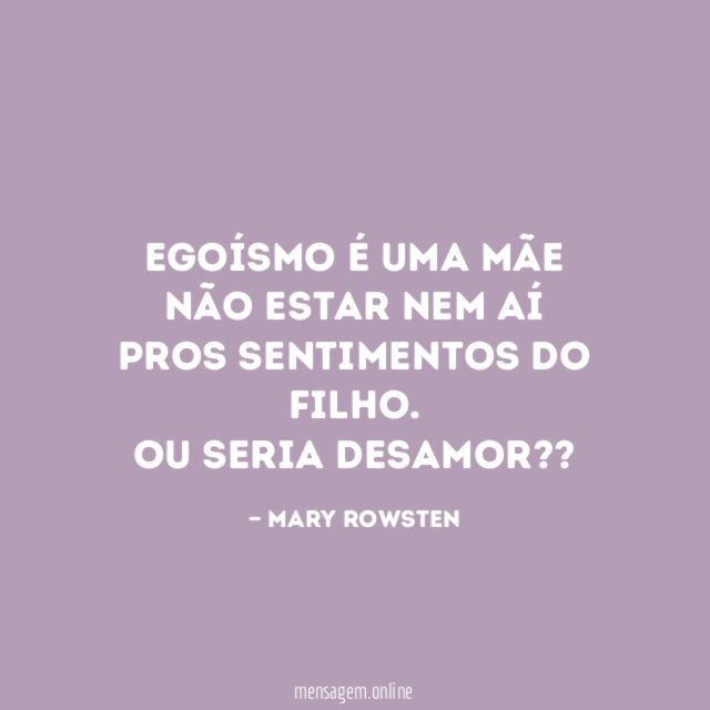 Egoísmo é uma mãe não estar nem aí pros sentimentos do filho. Ou seria desamor??