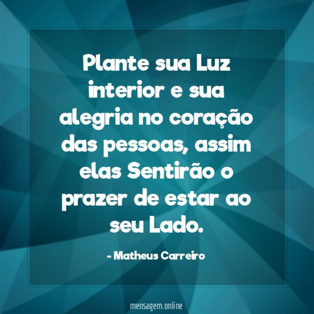 Plante sua Luz interior e sua alegria no coração das pessoas, assim elas Sentirão o prazer de estar ao seu Lado.