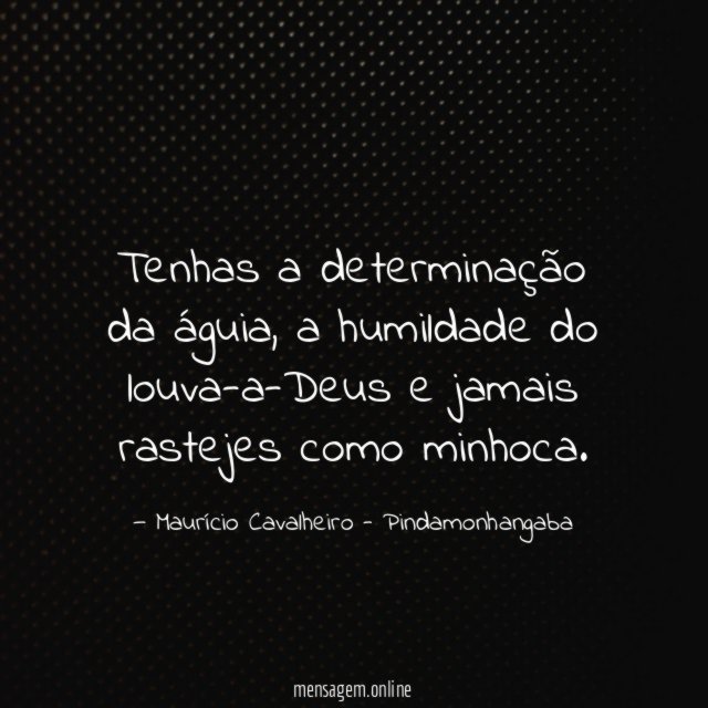 Tenhas a determinação da águia, a humildade do louva-a-Deus e jamais rastejes como minhoca.