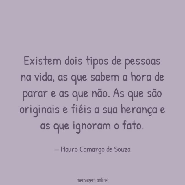Existem dois tipos de pessoas na vida, as que sabem a hora de parar e as que não. As que são originais e fiéis a sua herança e as que ignoram o fato.