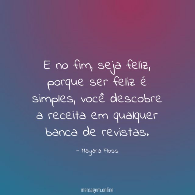 E no fim, seja feliz, porque ser feliz é simples, você descobre a receita em qualquer banca de revistas.
