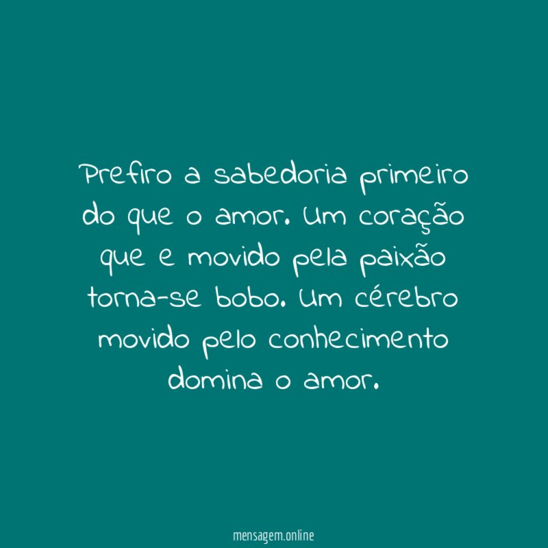 Prefiro a sabedoria primeiro do que o amor. Um coração que e movido pela paixão torna-se bobo. Um cérebro movido pelo conhecimento domina o amor.