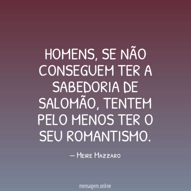 se não conseguem ter a sabedoria de Salomão, tentem pelo menos ter o seu romantismo."