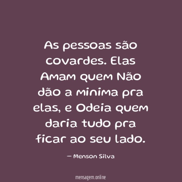 As pessoas são covardes. Elas Amam quem Não dão a minima pra elas, e Odeia quem daria tudo pra ficar ao seu lado.