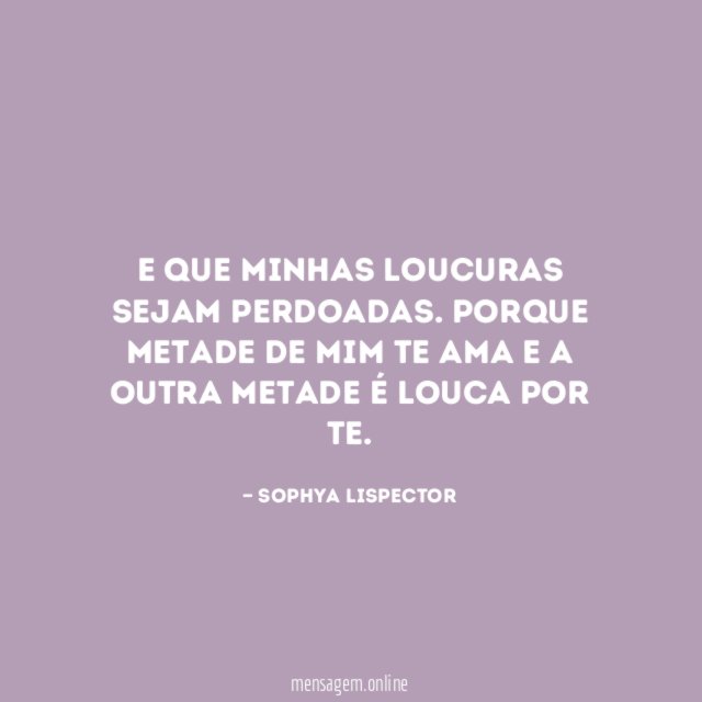 Eu não sei amar pouco, nem sofrer pela metade; eu sou inteira, até na dor.