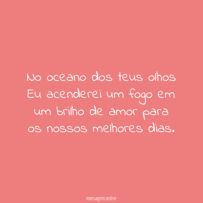 No oceano dos teus olhos Eu acenderei um fogo em um brilho de amor para os nossos melhores dias.
