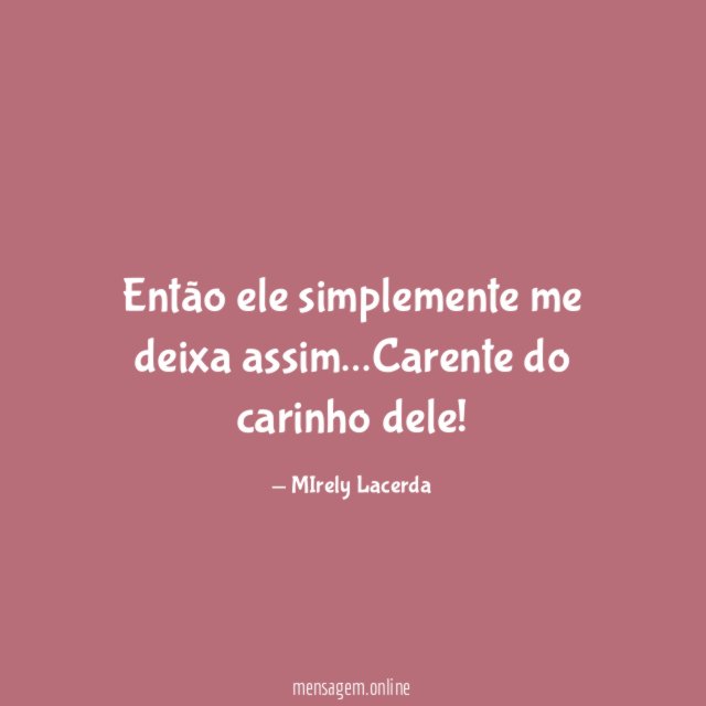 Então ele simplemente me deixa assim…Carente do carinho dele!