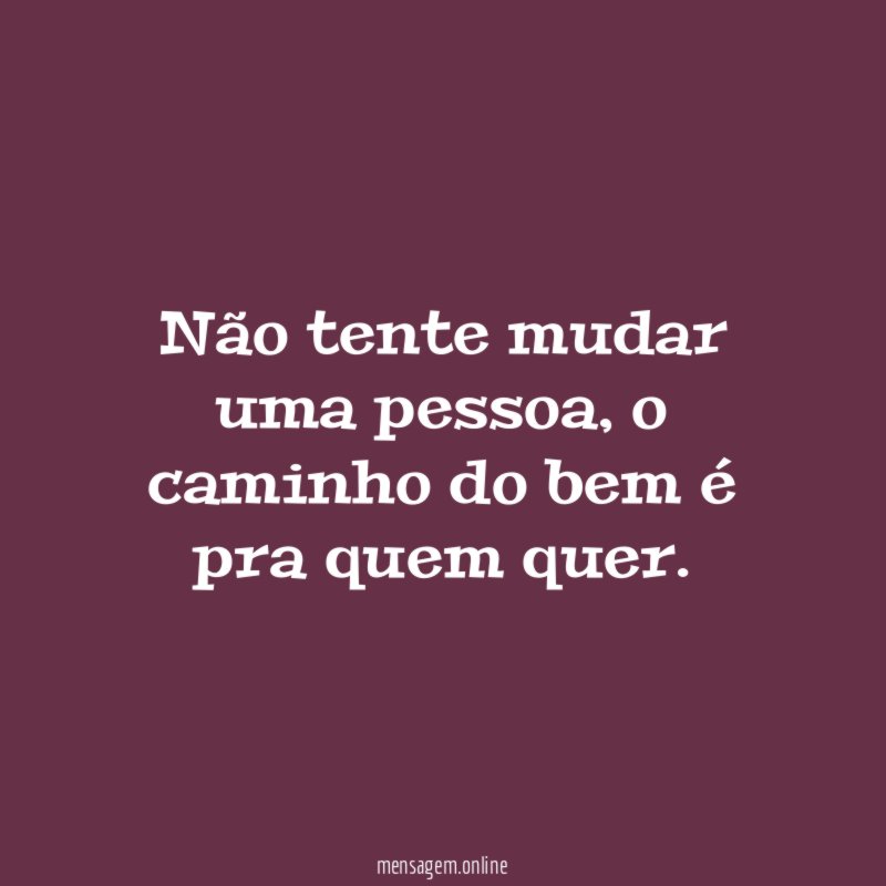 Não tente mudar uma pessoa, o caminho do bem é pra quem quer.