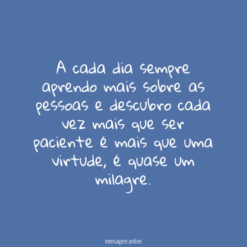 A cada dia sempre aprendo mais sobre as pessoas e descubro cada vez mais que ser paciente é mais que uma virtude, é quase um milagre.