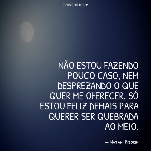 Não estou fazendo pouco caso, nem desprezando o que quer me oferecer. Só estou feliz demais para querer ser quebrada ao meio.