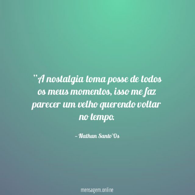 “A nostalgia toma posse de todos os meus momentos, isso me faz parecer um velho querendo voltar no tempo."