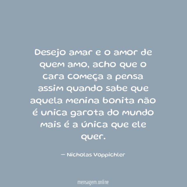 Desejo amar e o amor de quem amo, acho que o cara começa a pensa assim quando sabe que aquela menina bonita não é unica garota do mundo mais é a única que ele quer.