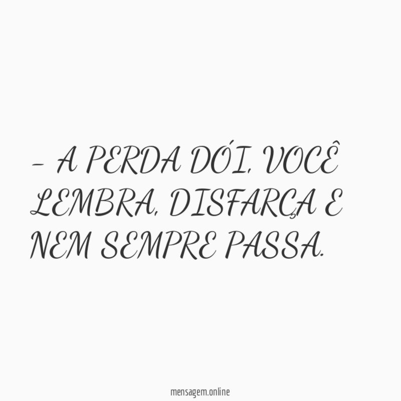 - A PERDA DÓI, VOCÊ LEMBRA, DISFARÇA E NEM SEMPRE PASSA.