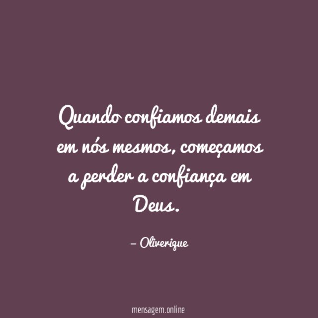Quando confiamos demais em nós mesmos, começamos a perder a confiança em Deus.