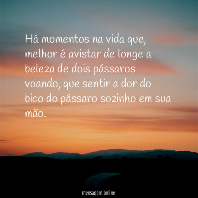 " MUITA DAS VEZES É MELHOR AVISTAR DE LONGE A BELEZA DE DOIS PÁSSAROS VOANDO QUE SENTIR A DOR DO BICO DAQUELE PÁSSARO SOZINHO NA SUA MÃO."